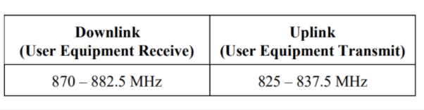 Spectrum Impacted: Yes, an extension of the paired 850 MHz band to 825 – 837.5 MHz / 870 – 882.5 MHz