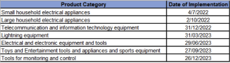 The authority decided to postpone the application of the ROHS technical regulation for a period of six months, after which the application will be carried out in stages according to the table below: